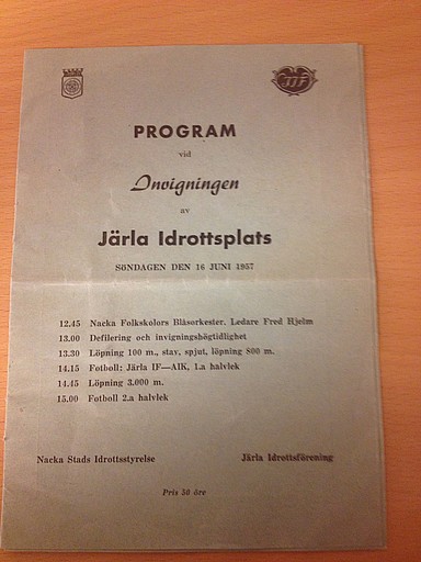 Invigningsprogrammet kostade 30 öre och huvudattraktionen var Järlas A-lag möte med AIK.