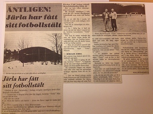 I Jubileumsskriften står det att läsa: "Fotboll har inom Järla IF varit sorgebarnet under så gott som alla de gångna tjugo åren".