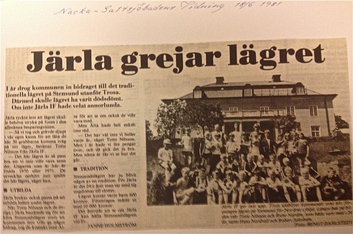i 24 år hade Järla anordnat pojkfotbollsläger i Stensund i Trosa på somrarna. 1981 ville inte kommunen ge bidrag till det längre, då bestämde sig klubben för att subventionera lägret själva.