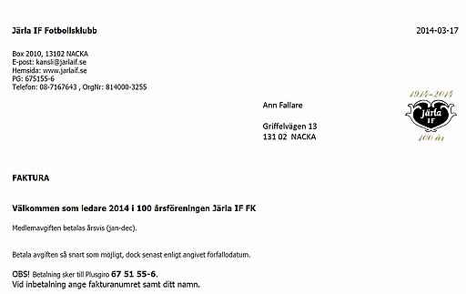 Vi ser fram mot att ni betalar fakturorna så fort som möjligt - dock senast 31/3.